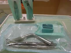 治療で使用するミラーやピンセットなどが入った基本セットは、オートクレーブで高温滅菌してパックされた器具を使用しています。コップ、エプロンは一人ずつ使い捨てです。何より、当院ではタービンも一人ずつ取り替えて高温オイル殺菌器で洗浄しています。感染対策は、患者さんには見えないところだけに、手を抜いてしまいやすいですが、実際はとても大切なところです。
